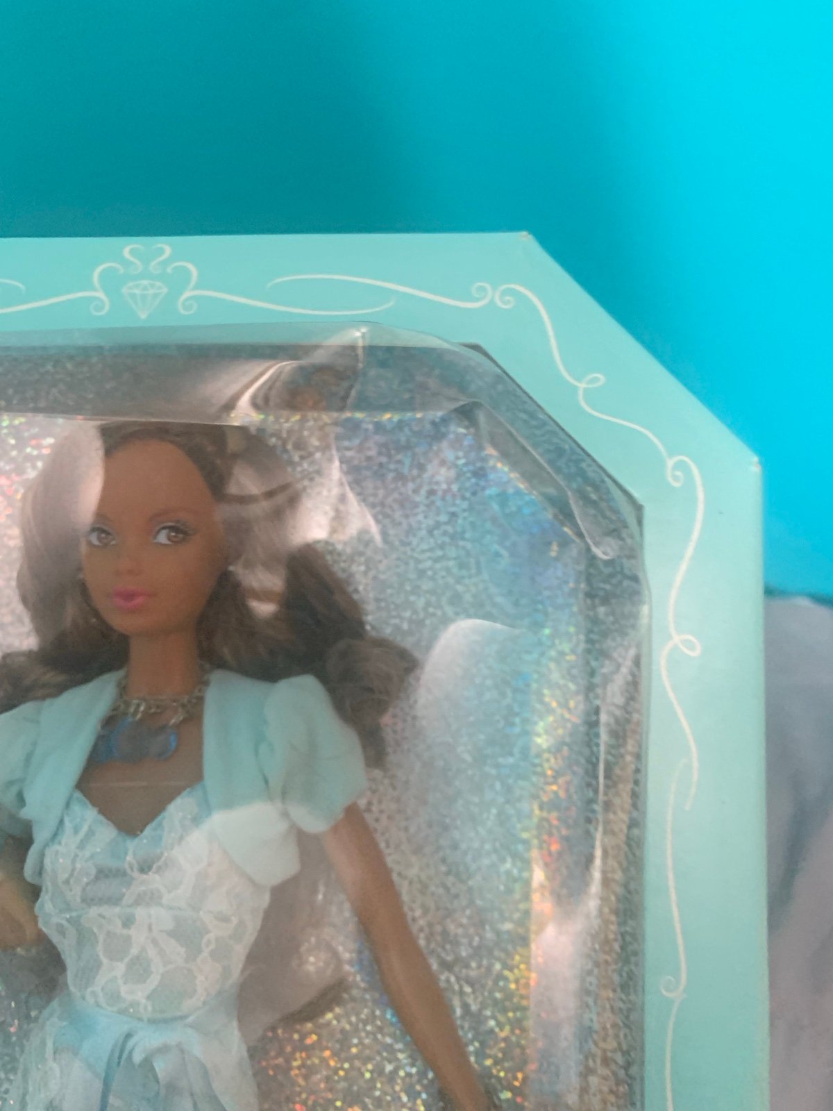 This rare Barbie doll is a must-have for collectors and fans alike. With its unique aquamarine and pug dog design, this March birthstone beauty is a true gem. The African American doll stands at 12 inches and features dark brown hair and brown eyes.