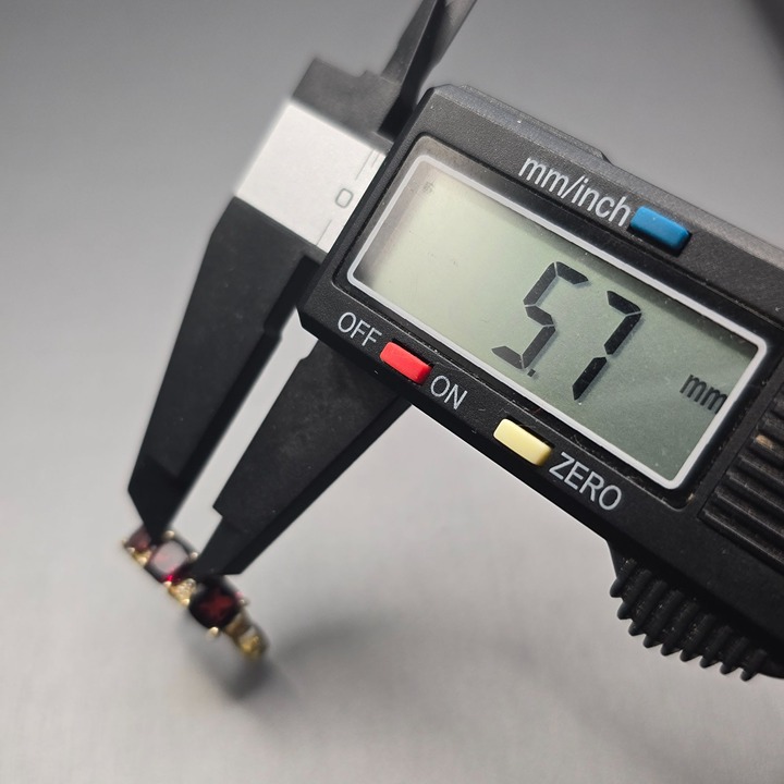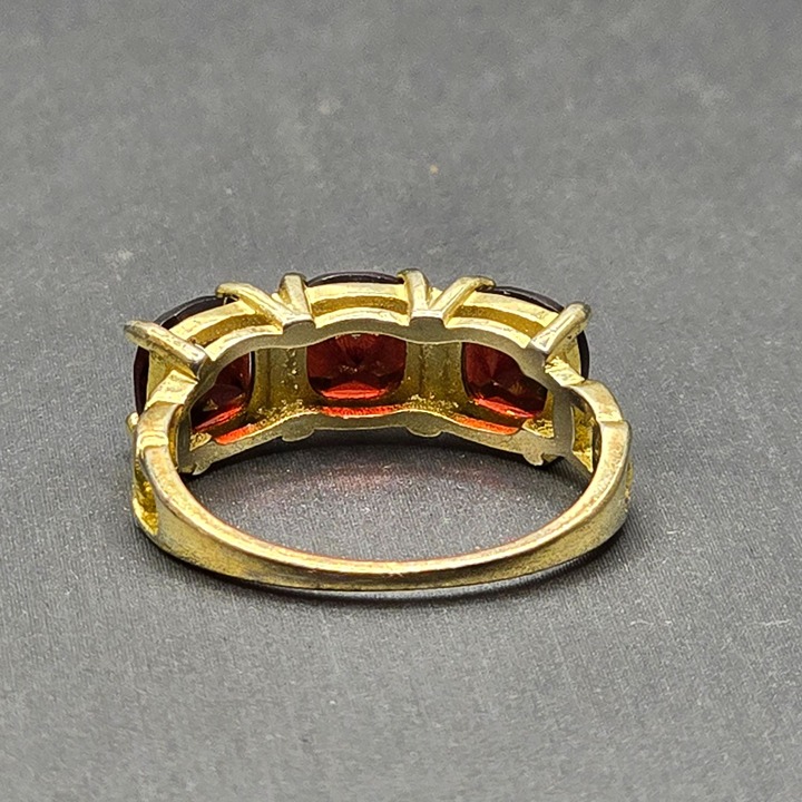 - Three cushion-cut garnet stones (approximately 1 ct each)
